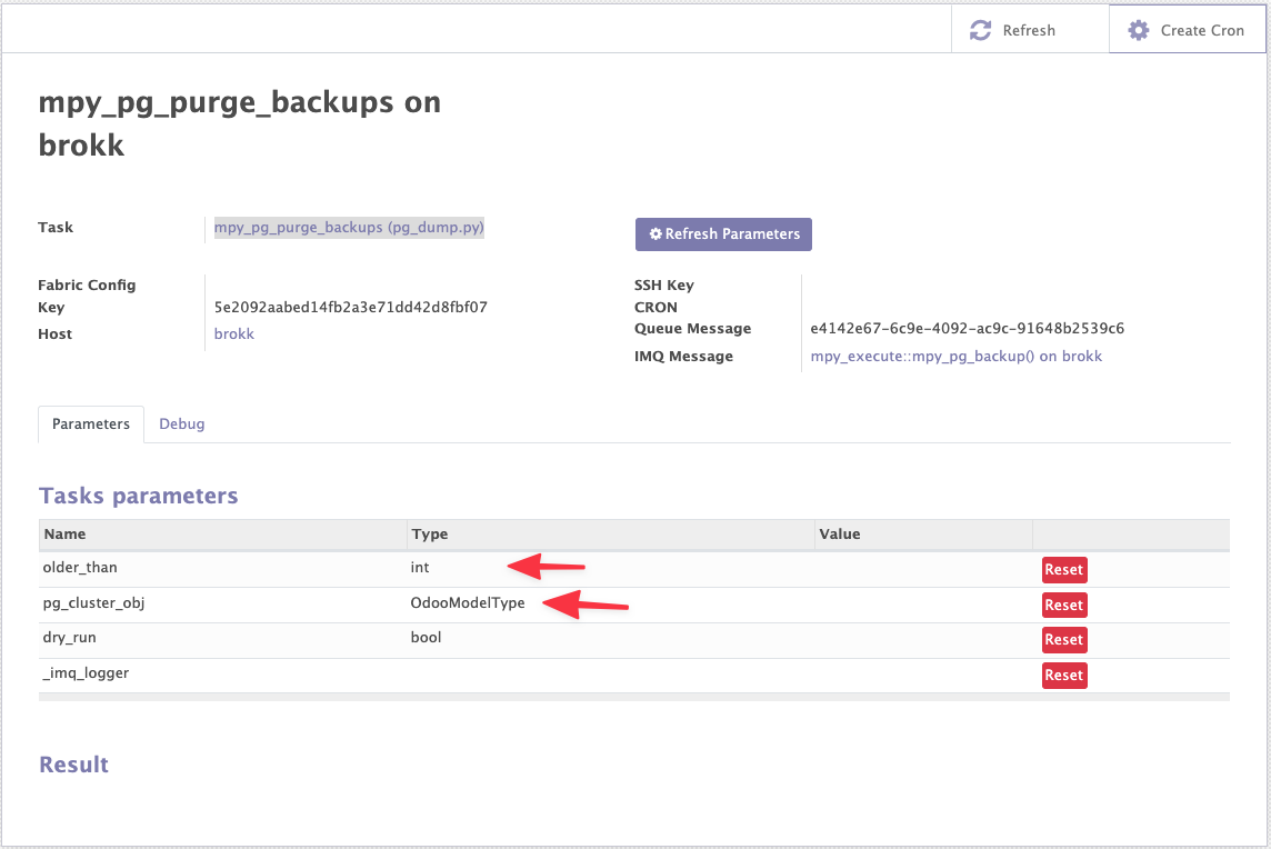 Le paramètre dry_run permet de simuler l'exécution de la Tâche et d'envoyer la liste des pg_dumps qui seront supprimés dans le cadre d'un exécution normale.