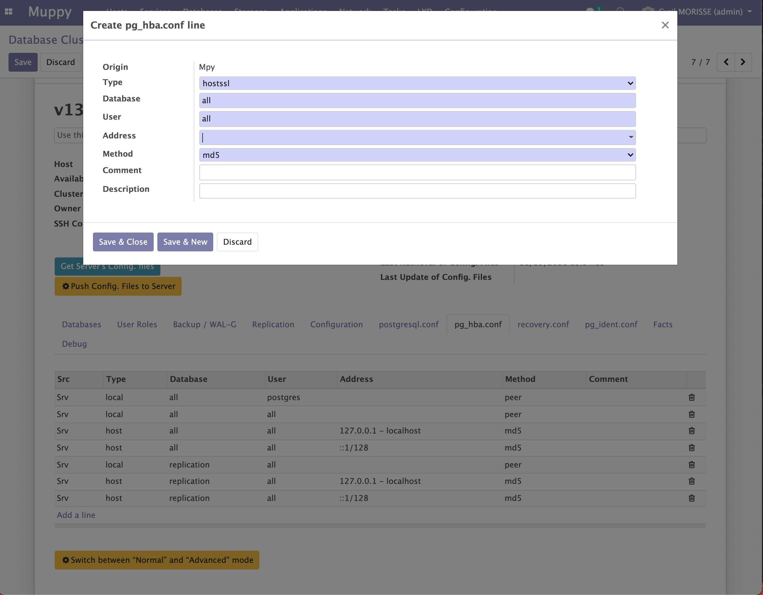 Muppy fournit une assistance à la saisie de pg_hba.conf.