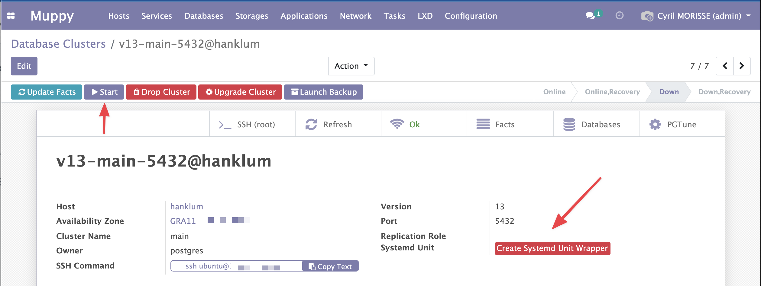 - Le Systemd Unit d'un cluster est accessible après avoir créé un Wrapper