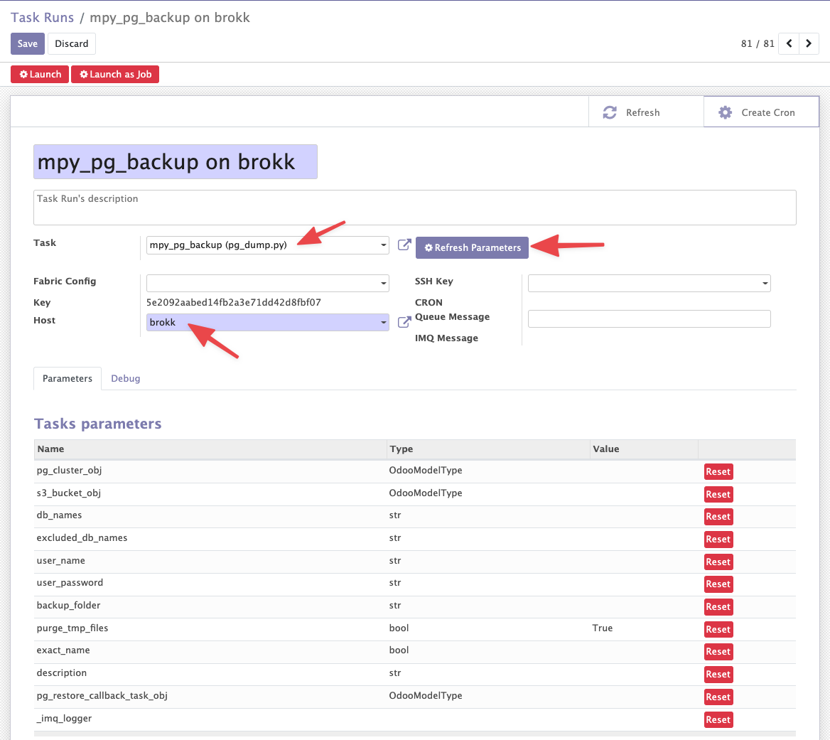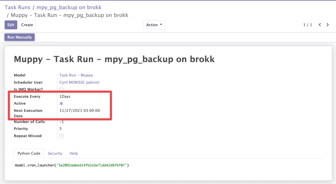 - Sélectionner la Task mpy_pg_backup (ou mpy_pg_copy_database)