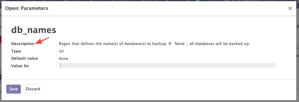 - Mettre à jour les paramètres en vous aidant des Descriptions qui s'affichent sur le formulaire de saisie de chaque Task parameter