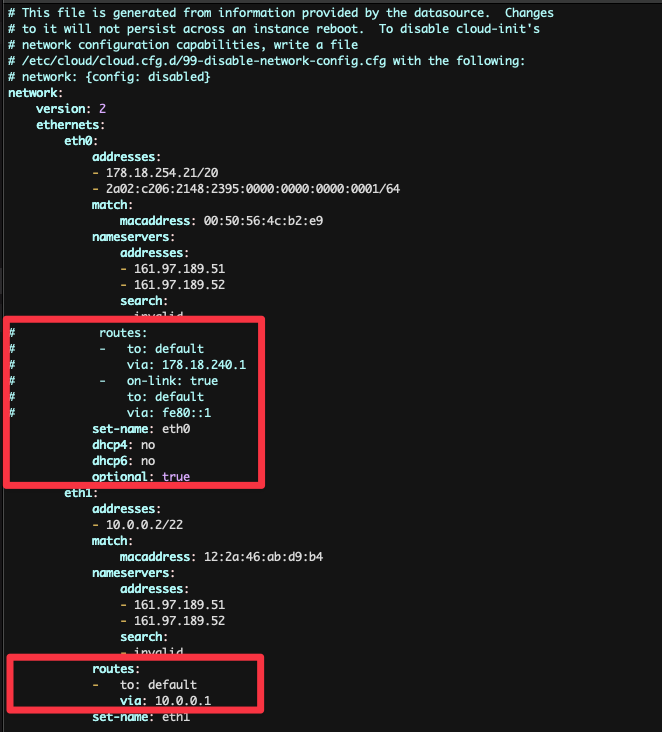L'étape suivante est la moise à jour de la config réseau pour désactiver l'IP Publique et ajouter la gateway sur l'IP privée.